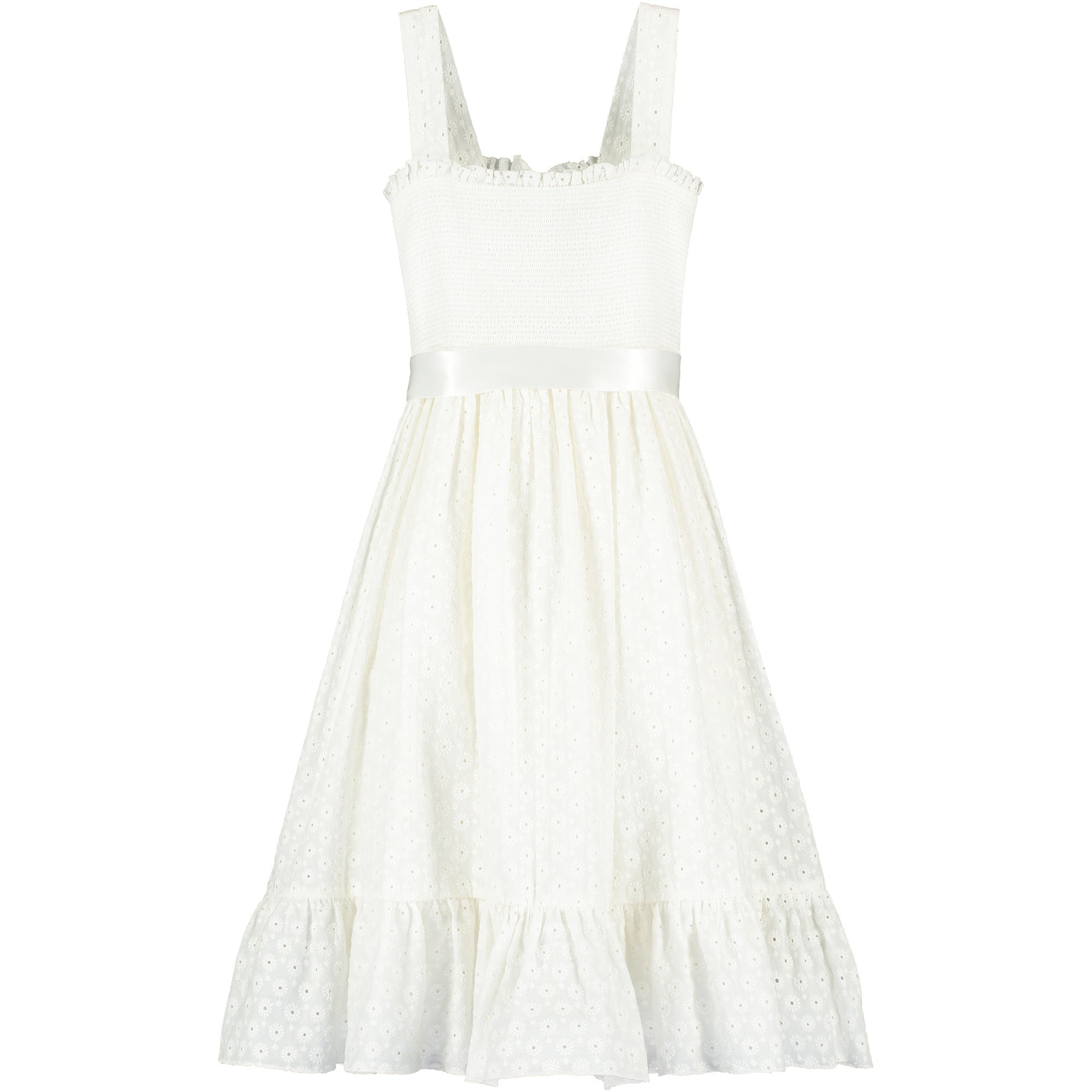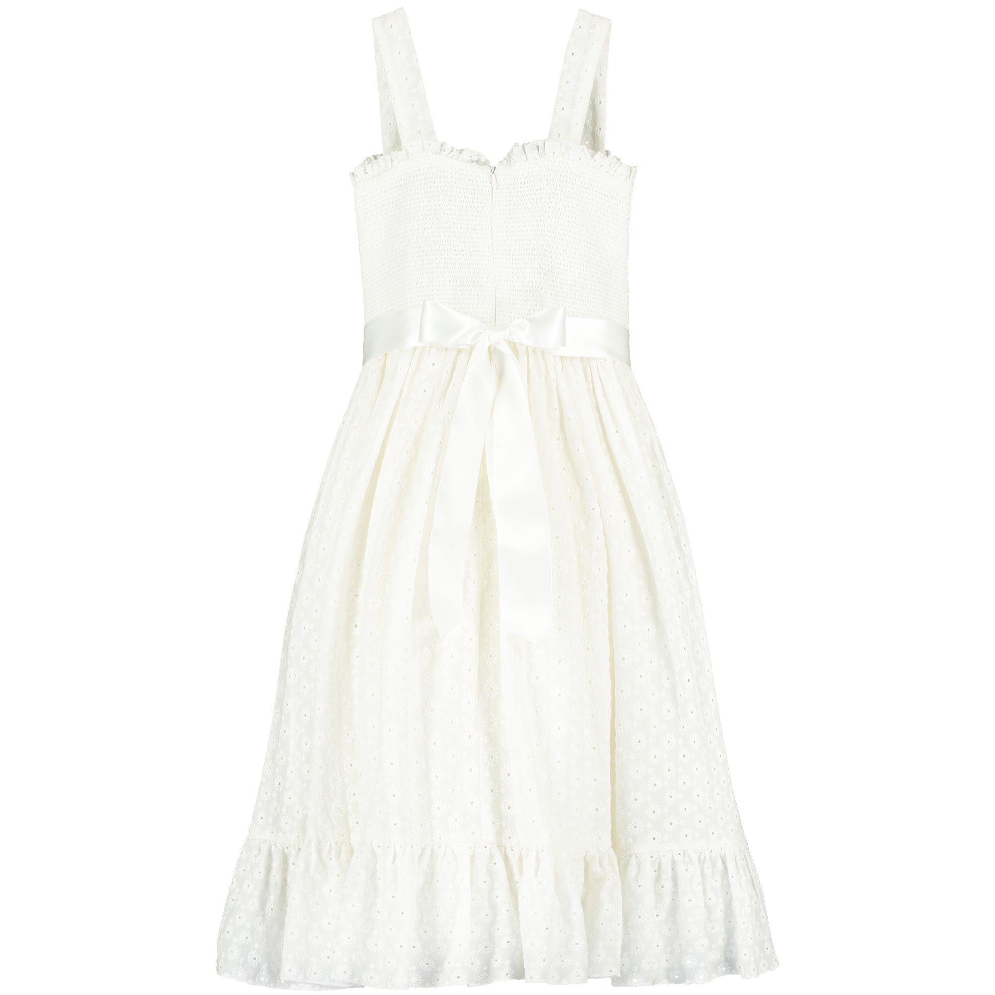 Ava Smocked Embroidered Cotton Girls Occasion Dress, White