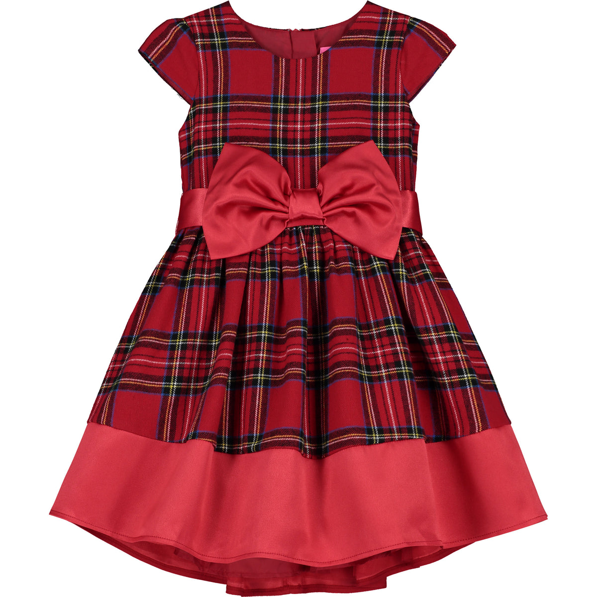 Jessie Plaid & Satin Bow Girls Party Dress, Red